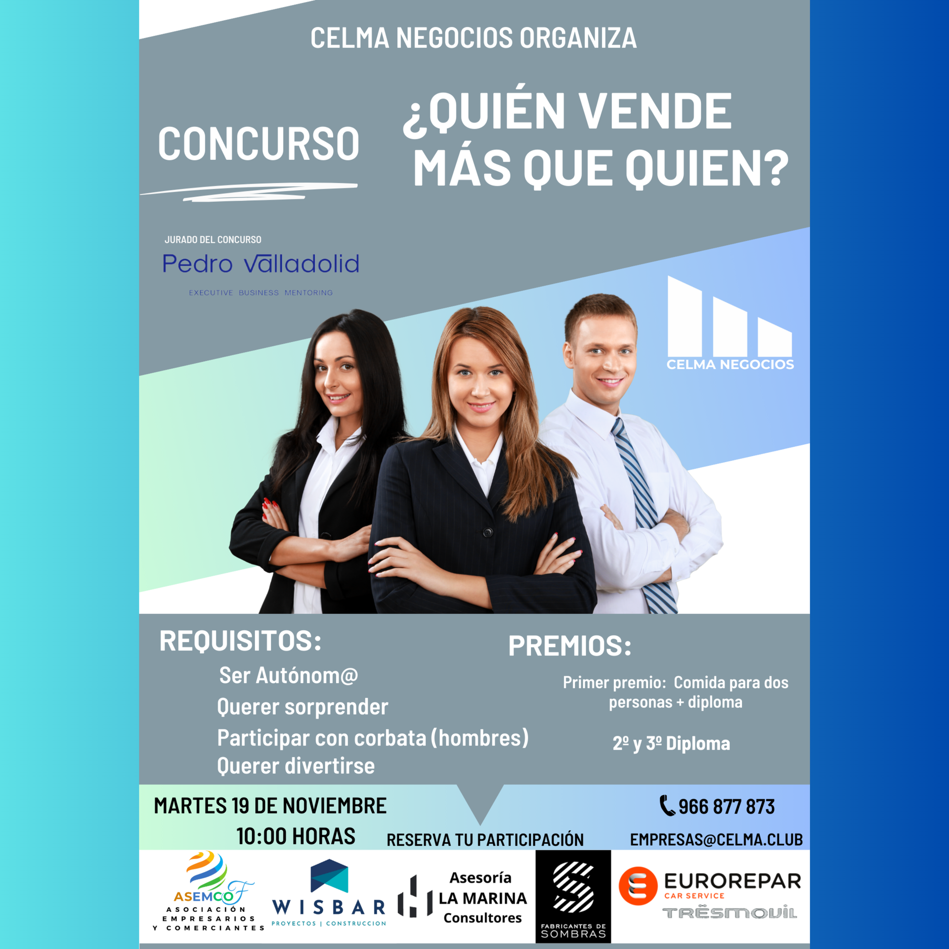 Vender productos y servicios es una mezcla de arte y ciencia. Por supuesto, esta es una tarea que requiere un equipo talentoso, pero también existen metodologías y estrategias para ayudar. Con el argumento adecuado y que atraiga al cliente, es posible aumentar el número de ventas de tu empresa. Este día será una forma de conocer a uno de los socios de celma negocios que son fabricantes de sombras. RECUERDA MARTES 15 DE OCTUBRE EN VILLAJOYOSA.