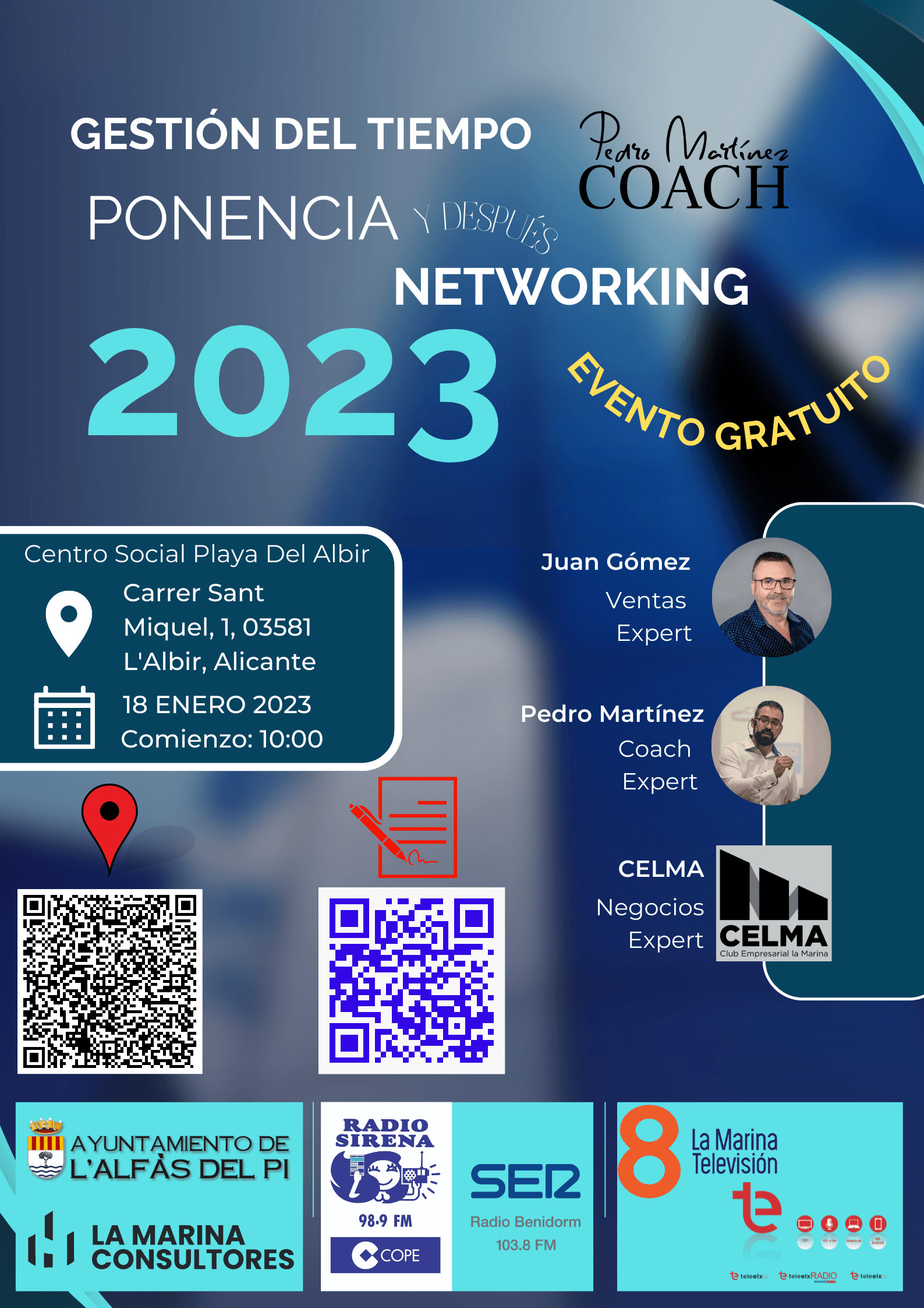 Comenzamos el 2023 con una ponencia sobre EL TIEMPO, será ofrecida por el Coach experto en esta materia, Pedro Martínez este evento será en El Centro Social el Albir Playa.